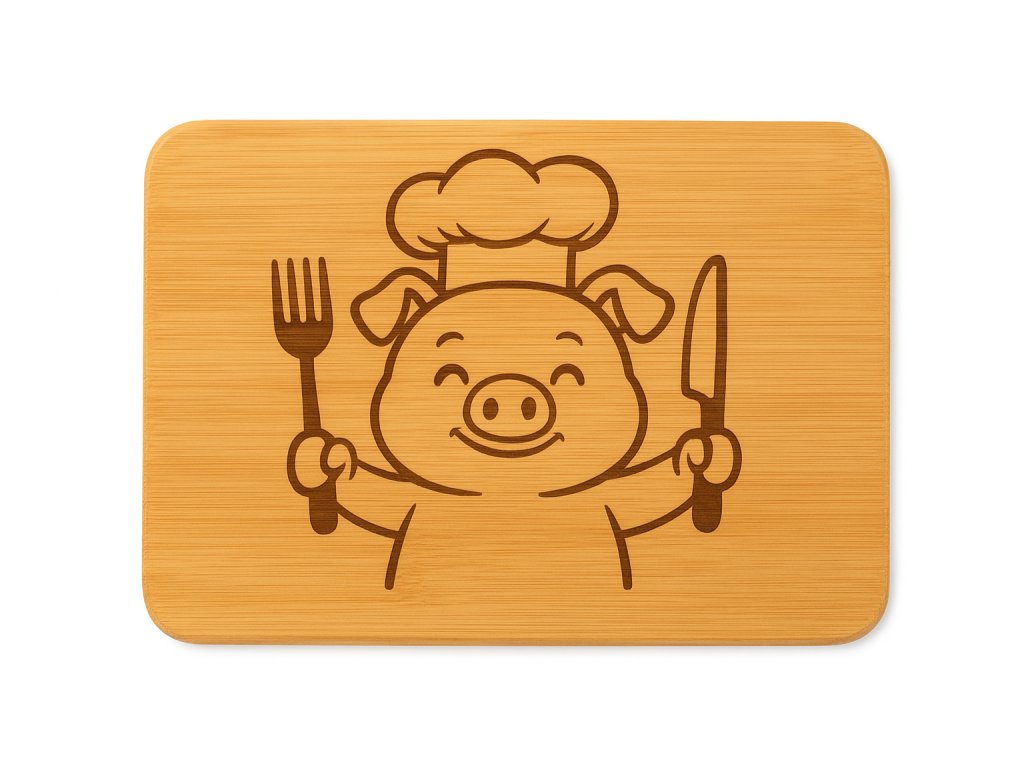 🐷 Bambusové prkénko „Šéfkuchař Prasátko“ – 22×14 cm