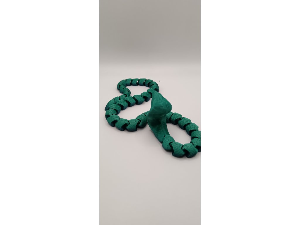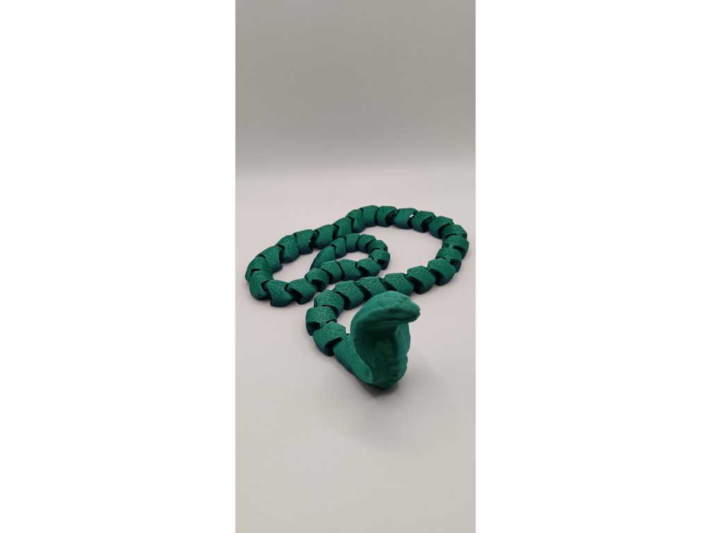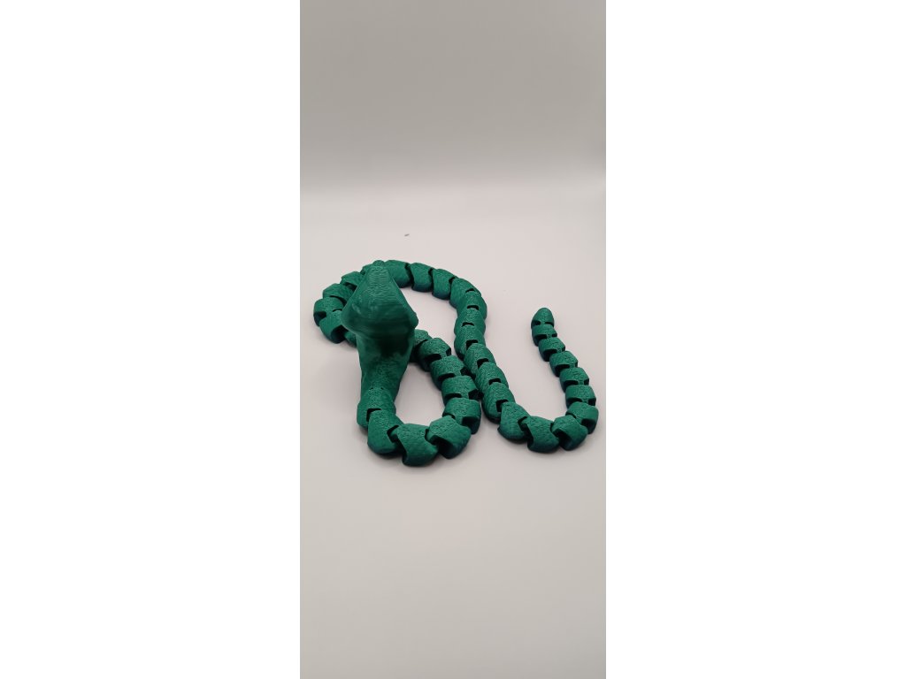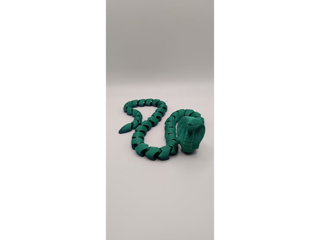 Naše flexi kobra vyrobená pomocí moderního 3D tisku z ekologického PLA materiálu tě uchvátí svým realistickým vzhledem a pohyblivým tělem, které se vlní jako živé.